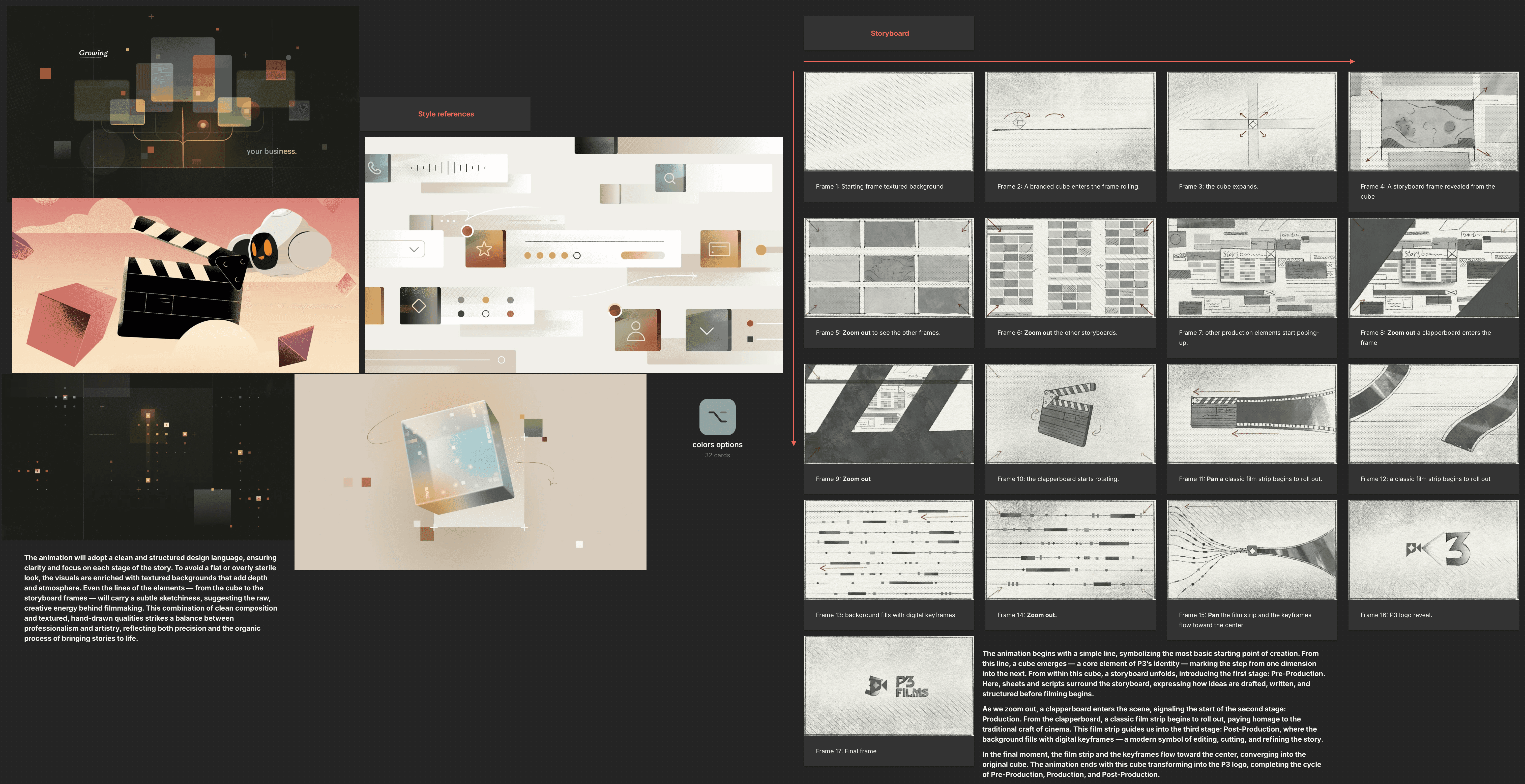 The P3 Manifesto animation is a 2D animation enhanced with 3D elements, all shaded in a 2D style, giving it a distinct, cohesive look. My process began with full concept development and storyboarding, and I created the entire animation flow, from pre-production to the final cut. I also designed the entire soundscape using professional audio libraries to enrich the narrative. Crucially, I developed three distinct color palettes that run throughout the animation, allowing it to adapt seamlessly across different platforms. Every step of the process—from timing, to transitions, to the integration of sound—was driven by a dedication to precision and a deep respect for the message.